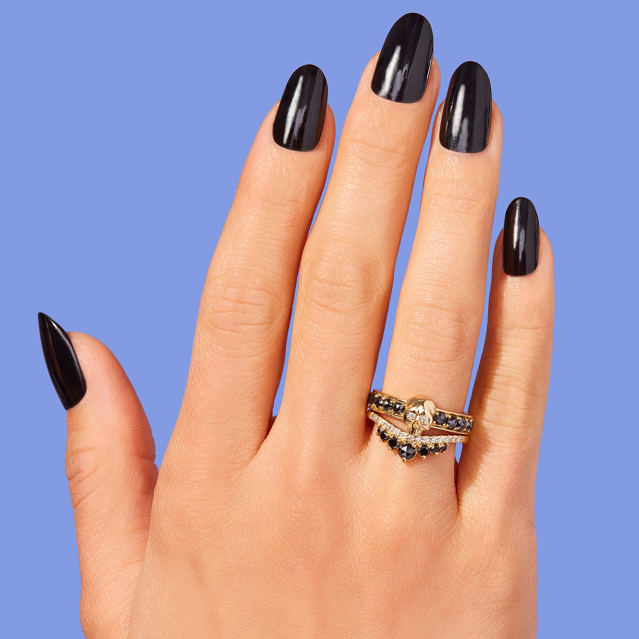 - Pavé on inner row: Black Spinel. White Moissanite. or Lab Diamonds