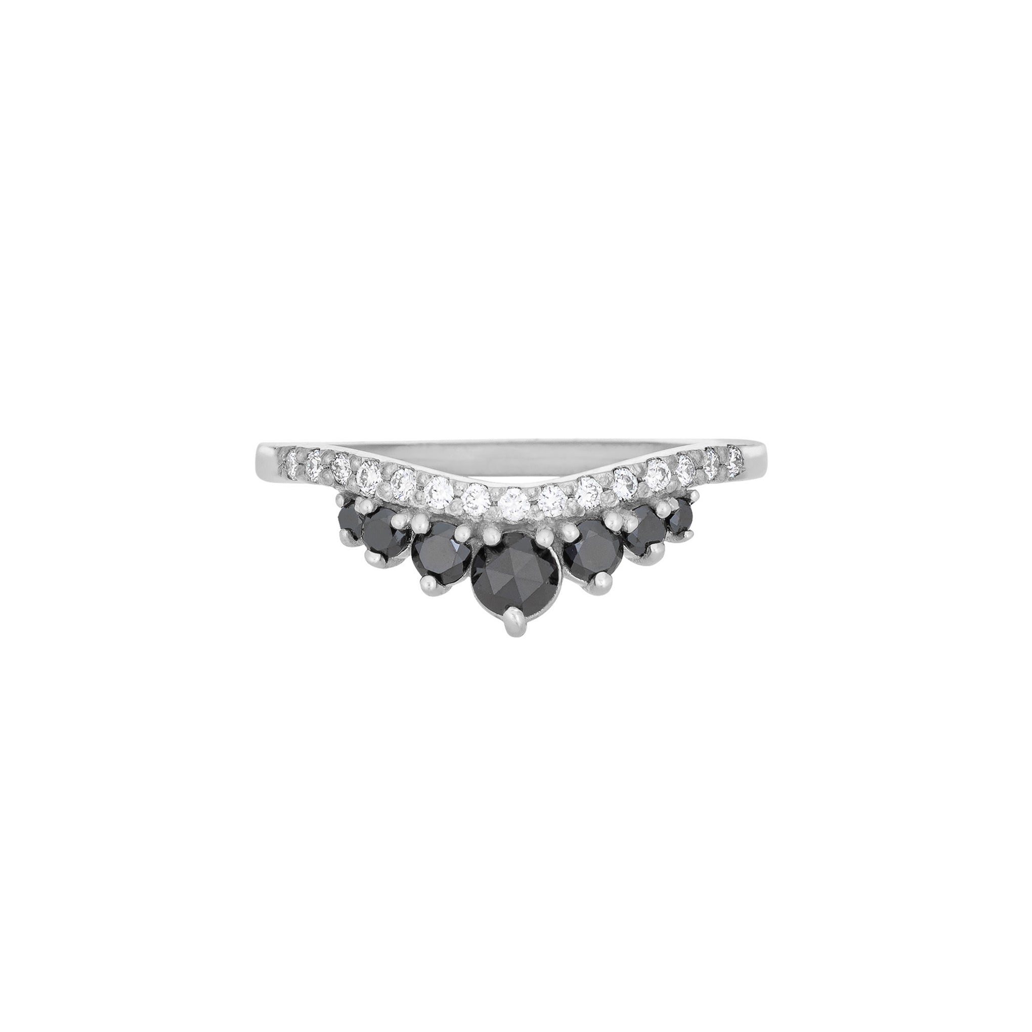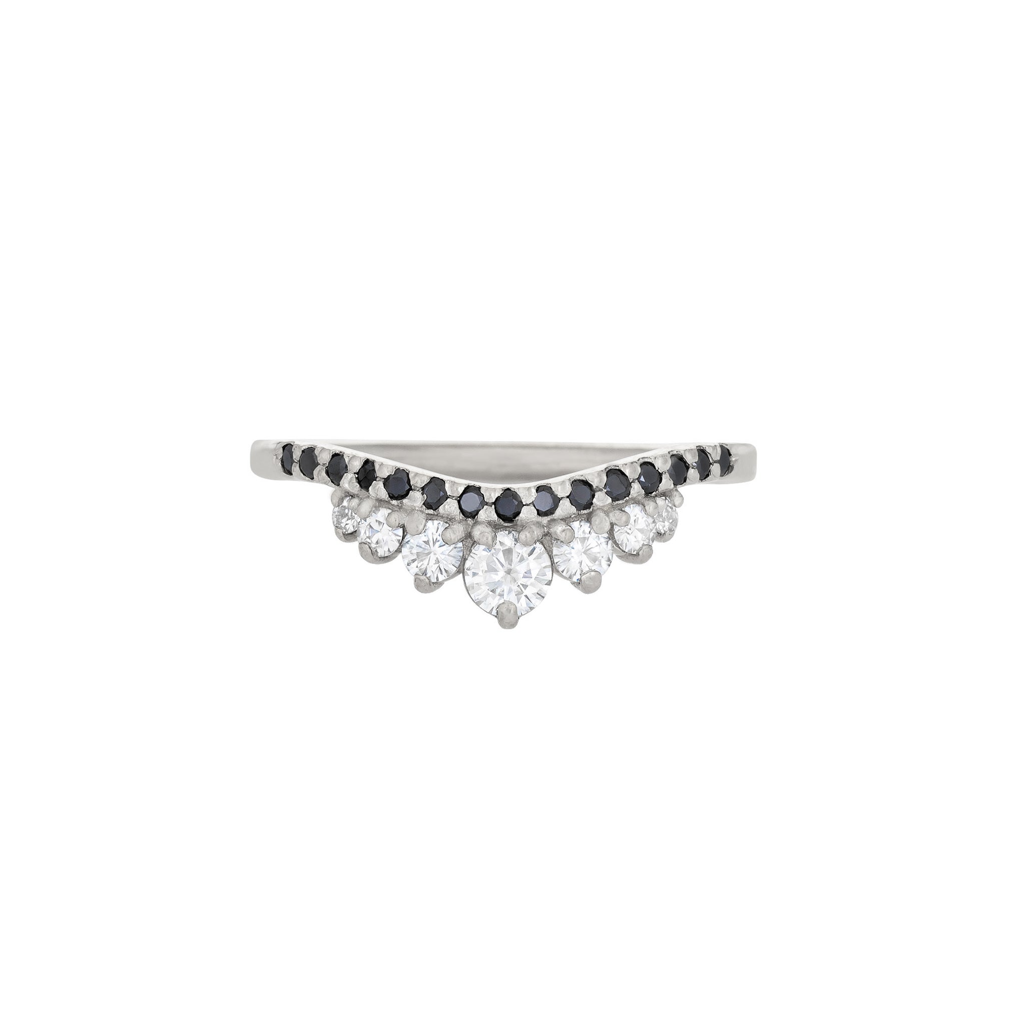 - Graduated Round Stones on outer row: Black Diamonds or White Moissanite