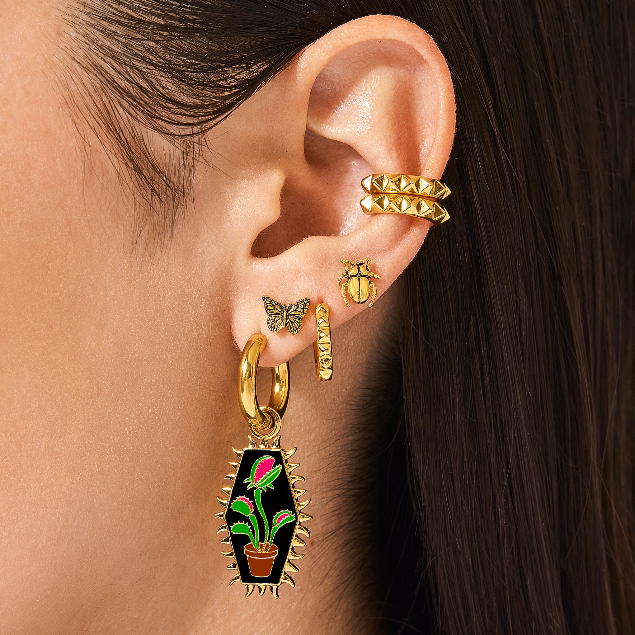 Display your appreciation for these elegant insects with these delicate and intricate stud earrings.
