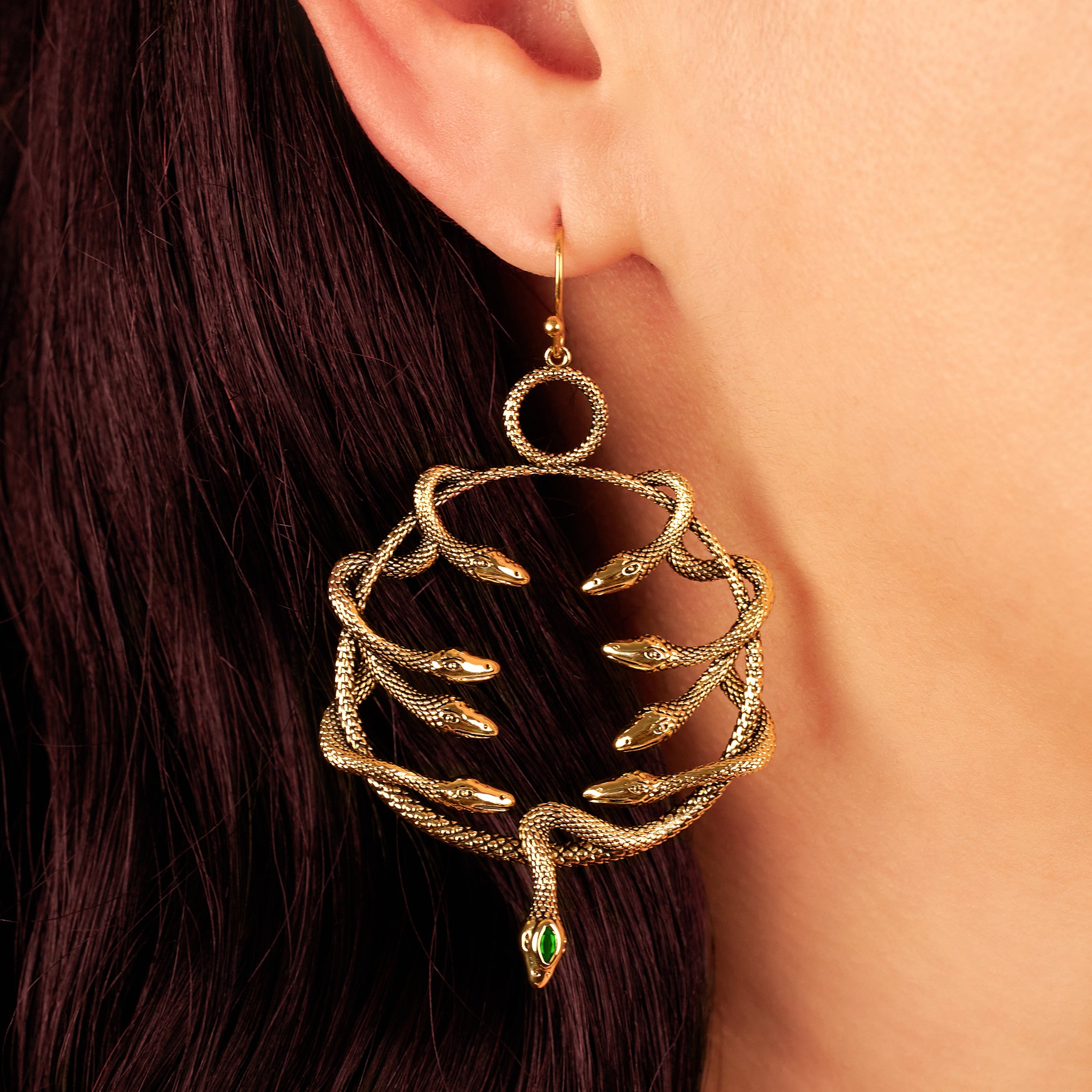Hydra. also known as the water snake. is the largest constellation in the sky. It covers 3% of the celestial sphere. Mythology depicts hydra as a 9-headed monster with one immortal head. If you cut off one hydra head. two more would grow back in its place. In the sky. hydra is only shown with one head - perhaps this is the immortal one? Wear the legend with these bold. hanging hoop statement earrings.