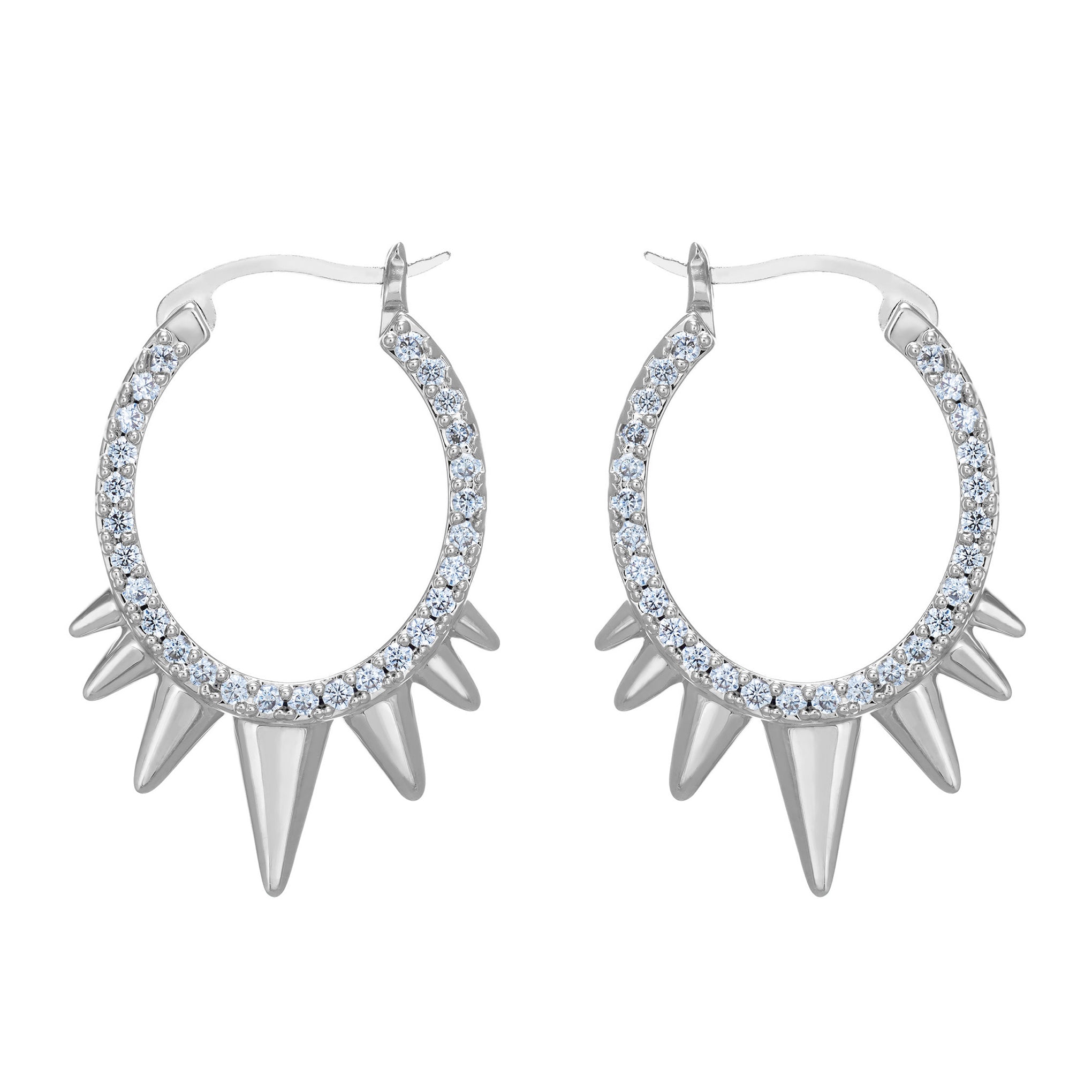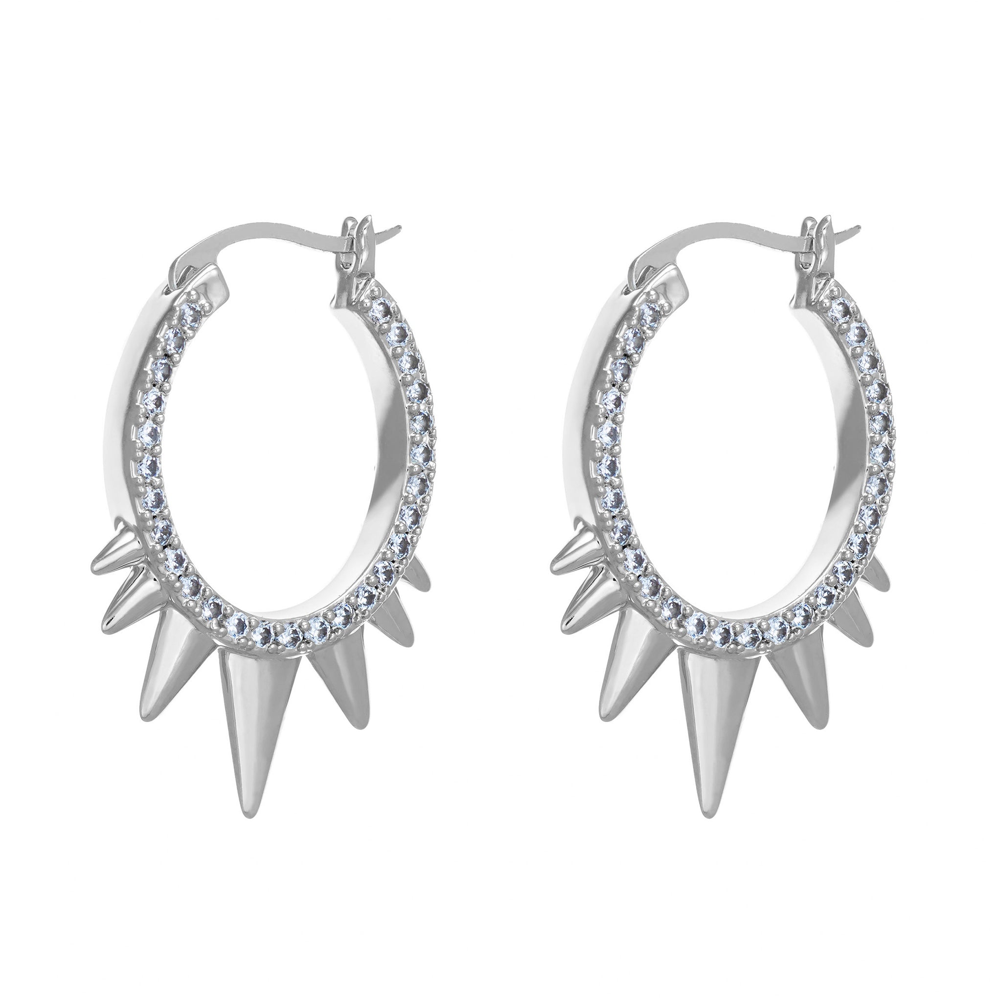 These spiked hoop earrings feature stone detail on both sides so you'll never go unnoticed. Available in 3 colors. these earrings are sure to add some attitude to any outfit while being lightweight and comfortable for everyday wear.