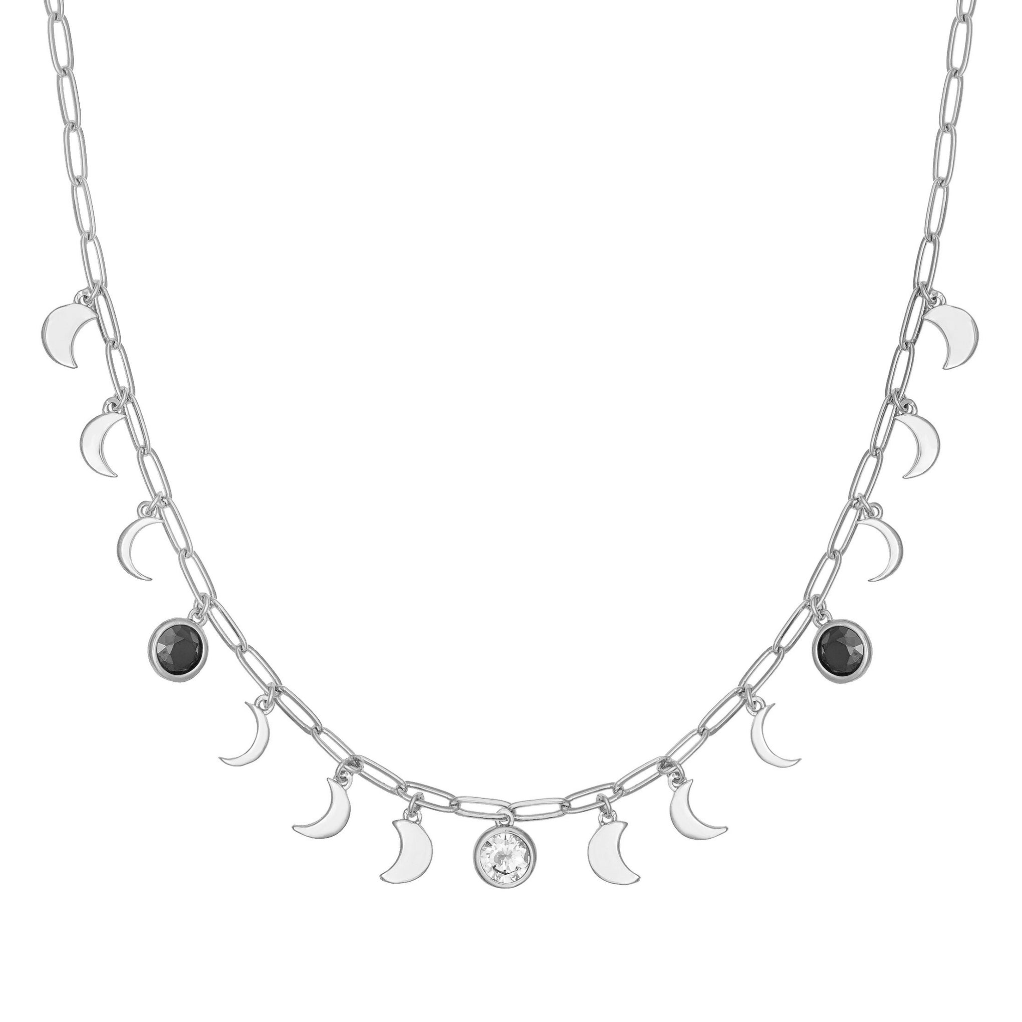 Wear all the phases of the moon in this eye-catching multi charm. shaker necklace. Adjustable chain lengths makes it able to be worn as a choker or longer as the perfect layer. 14in chain with an additional 3in extension chain.
