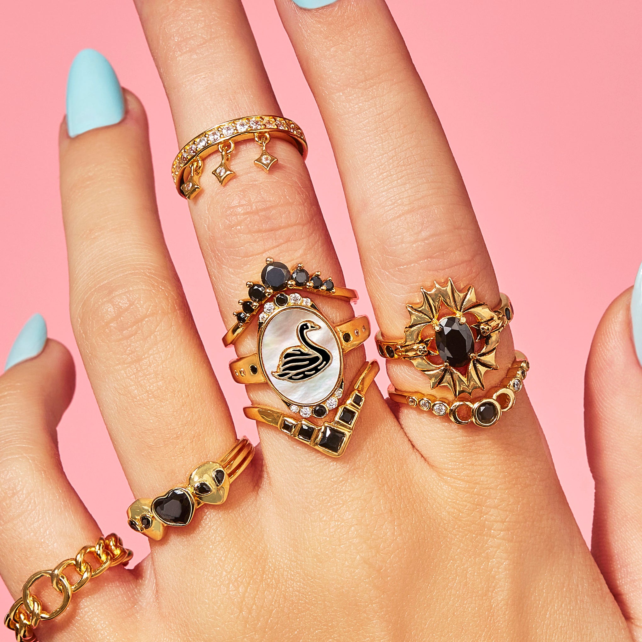 A classic arched accent ring that can be worn solo or paired to enhance another ring from your collection. Available in 3 colors: black. garnet. or emerald green.