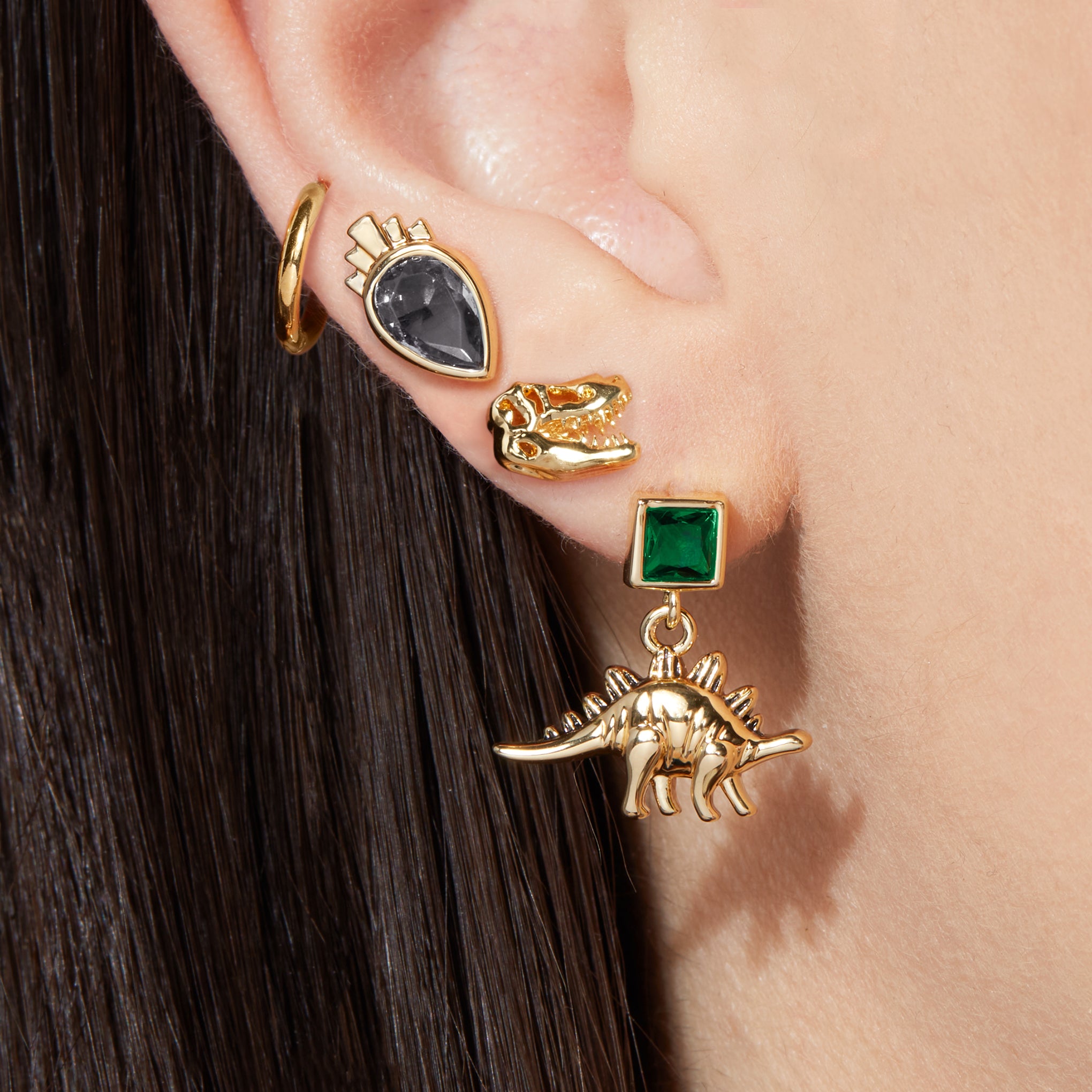 Many people think that the biggest threat to Stegosaurus was Tyrannosaurus Rex. yet Stegosaurus had already been extinct for approximately 80 million years before the appearance of Tyrannosaurus. That means less time separates us from Tyrannosaurus Rex than separated T-Rex from Stegosaurus. A specimen of Allosaurus - a large two-legged predator dinosaur pre-dating Tyrannosaurus Rex by 80 million years - bears puncture wounds that match the points of Stegosaurus tail spikes. This finding led scientists to determine that the slow paced herbivore used its tail as a weapon. These stud drop earrings pay homage to the toughest vegetarian to ever roam the Earth.