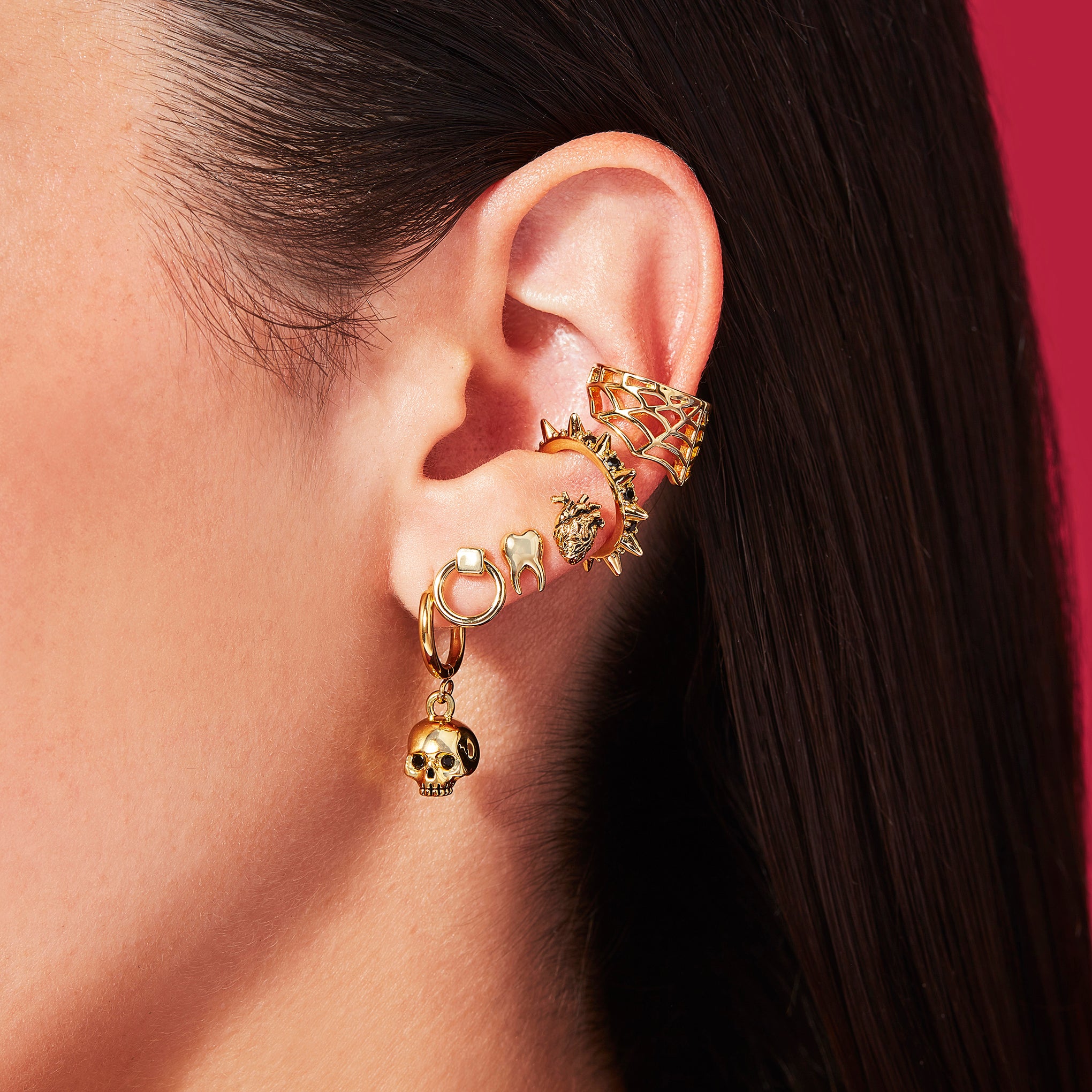 Make the most of the present in these haunting earrings of skulls with sparkling black stone eyes on 11mm stainless steel huggie hoops.