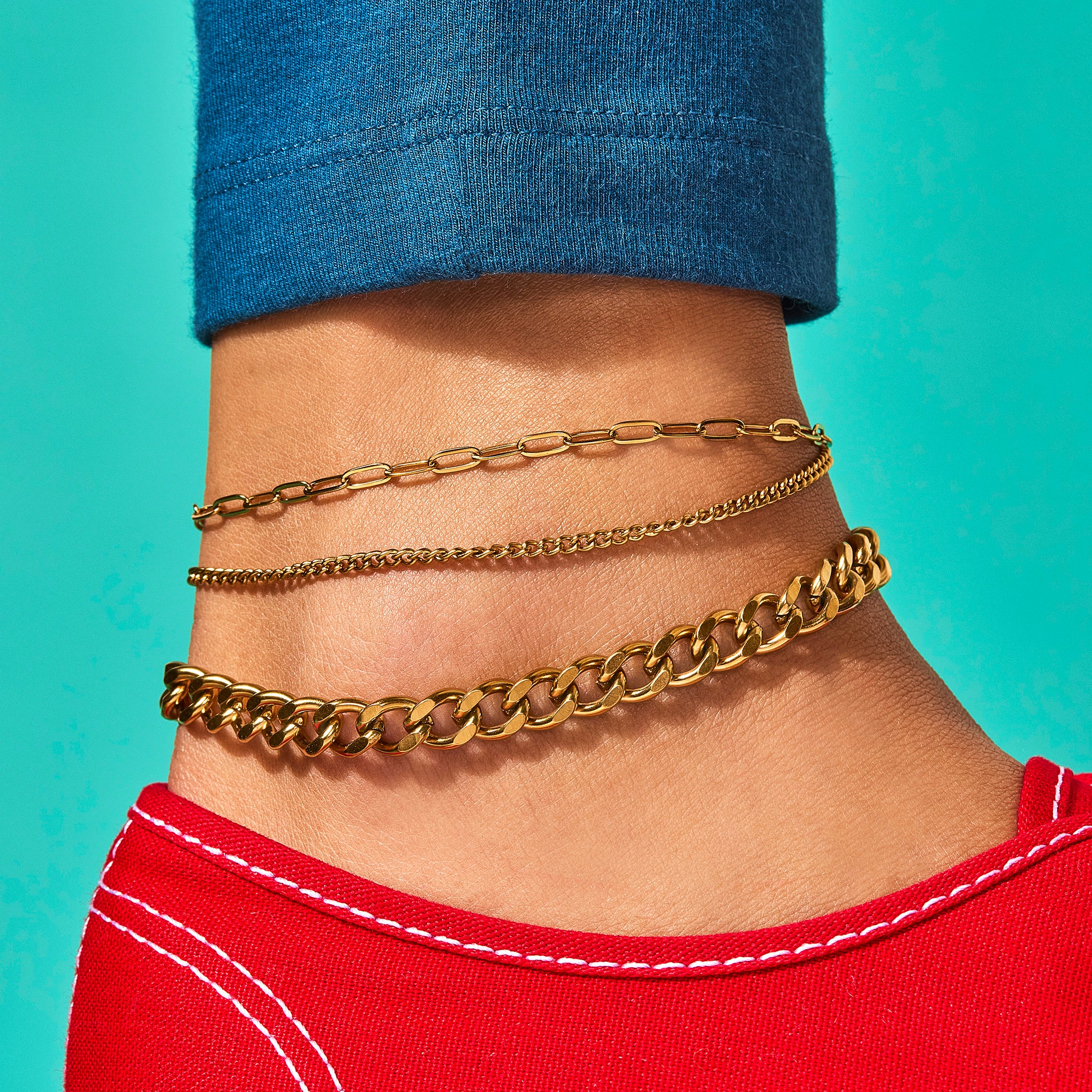 This hypoallergenic. stainless steel curb chain anklet looks bold worn on its own or layered. Available in 9in or 10in.