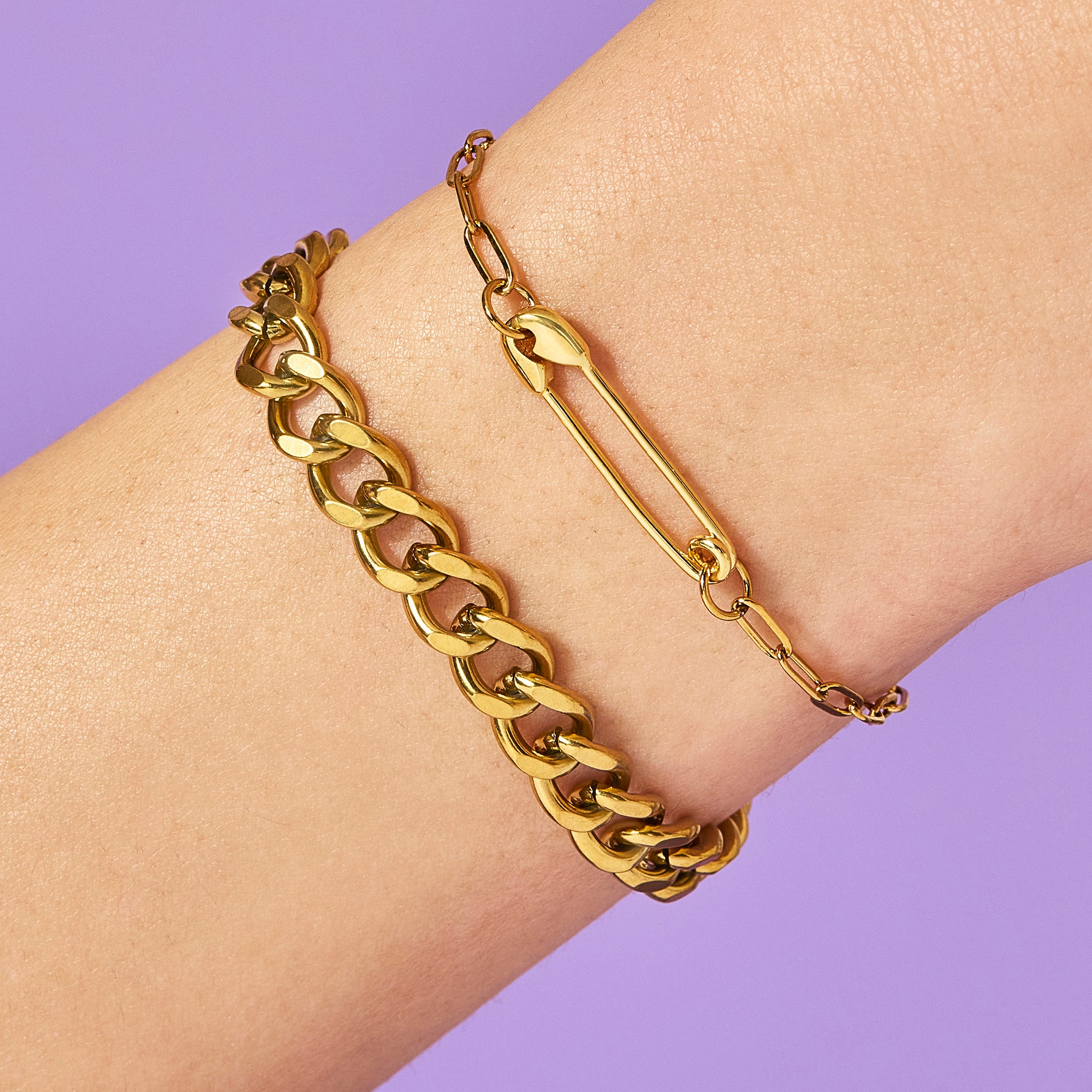 A hypoallergenic. stainless steel curb chain bracelet that looks bold worn on its own or layered. 6.25 inch length with an extra 1.75 inch extension chain.