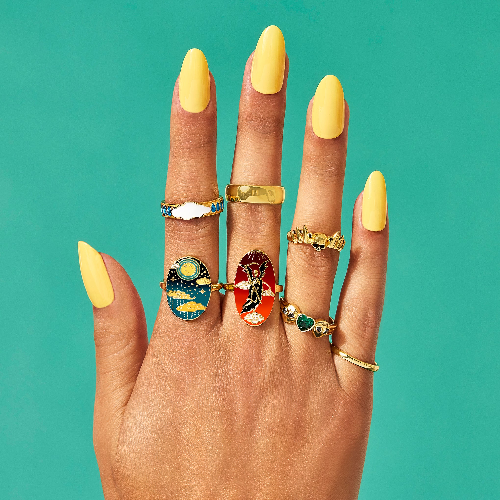 This sterling silver ring has it all: an ombre night sky backdrop of stars. a glowing full moon. and vintage style rain clouds.